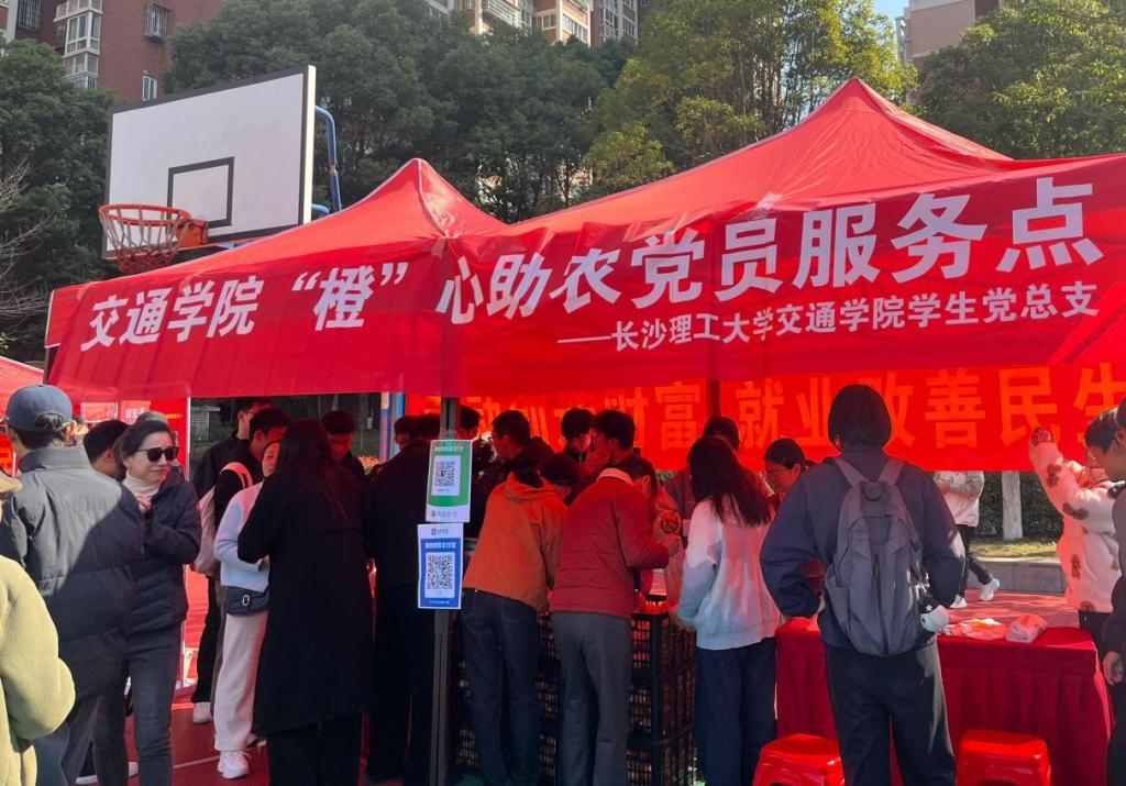 新宁县马头桥镇坪山村脐橙熟了,但受限于当地交通条件和市场渠道,部分果农面临销售难题,交通学院本科生党支部得知这一情况后,迅速展开行动,依托“党建+助农”模式,策划了此次“脐橙进社区”公益助销活动。在卢浮社区活动现场,印有“橙心助农”的红色展台格外醒目,金黄的脐橙堆成小山。党员们化身“带货达人”,通过现场讲解、免费试吃品鉴、免费送货上门等方式,向社区居民极力宣传坪山村脐橙。不少居民被学生们的真诚打动,主动加入助农行列,有人帮忙转发义卖信息,有人自发号召邻居团购……