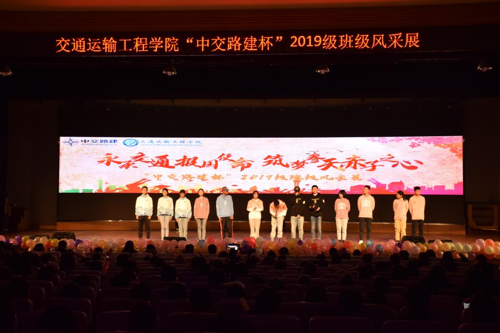 12月3日晚,交通学院于金盆岭校区五教大礼堂举办“永承交通报国使命,筑梦参天赤子之心”主题班级风采展。本次晚会由中交路桥建设有限公司赞助。交通学院党委书记胡庆国、研究生院副院长兼研工部部长田上、副院长何忠明,党委副书记王煜坤、团委书记陈璐莎、学工办辅导员和部分班级班主任、助班、下班出席本次活动。