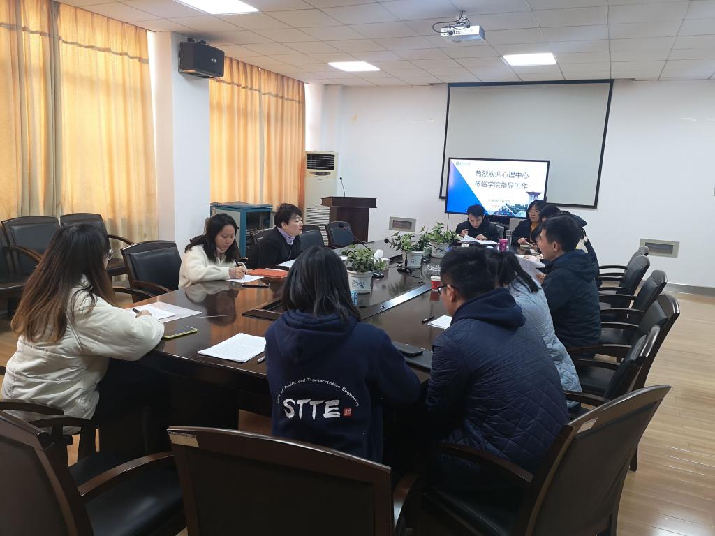 12月24日上午,交通学院在工二B413开展心理健康教育工作座谈会,校心理健康教育中心主任龚勋、专职教师王鑫,学院党委书记孔伟红、副书记王煜坤及全体辅导员参会。