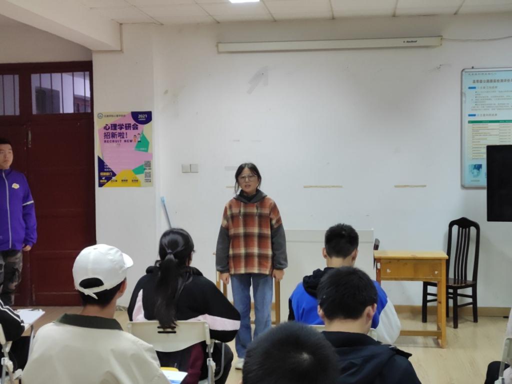 1026日下午,交通学院心理学研会于金盆岭校区十教2-B开展朋辈互助心理健康知识培训会。20级各班心理委员及寝室长参加此次培训会,宣传部部长李佳欣担任主讲人