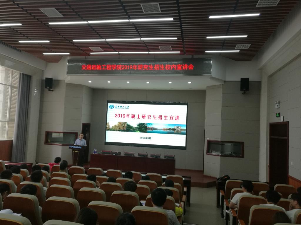6月12日下午,交通运输工程学院在云塘校区工科二号楼B301召开了2019年研究生招生校内宣讲会,校内近百名学生参加了此次宣讲,宣讲会也吸引了不少外校的学生到场聆听。研究生院龚文斌副院长、交通运输工程学院高英力副院长为学生做了2019年硕士研究生招生宣讲介绍。
