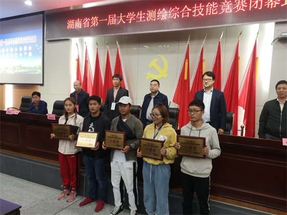 10月12日至14日,湖南省第一届大学生测绘综合技能竞赛在湖南城市学院举办。我校专业队(1队)余时清、王熙来、蔡锦峰、仝金钊、李长海和李罗红与非专业队(2队)杨静、钱卓异、欧阳贵、韩文浩、刘江浩与颜晓航共计12位同学在领队徐鹏老师和领队教师熊旭平、廖中平、范志勇与丁美青指导下,经过激烈角逐,分别位列总分第四、第五名,荣获二等奖。