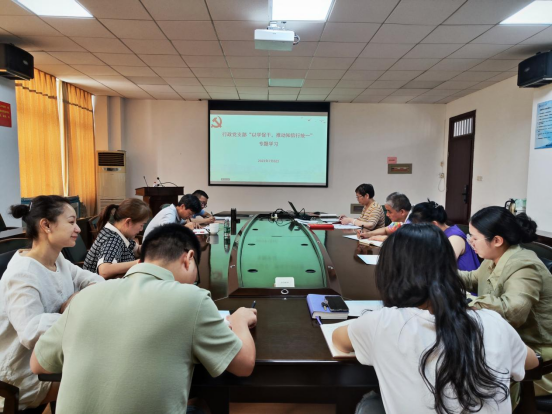 2023年7月6日上午10点,行政党支部在工二b413开展“以学促干,推动知信行统一”专题学习,全体党员参加。