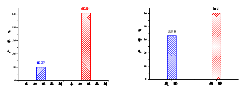 在超声加热的条件下,硫酸钙晶须的产率是随超声温度的升高而升高。在水浴加热的条件下,硫酸钙晶须的产率在70~80℃出现峰值,结合超声加热法制备硫酸钙晶须的结论可知,在温度为70~80℃时,可以制得高产率硫酸钙晶须。