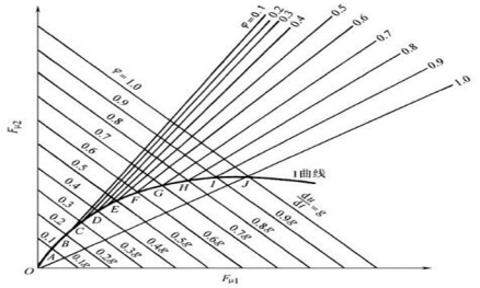 制动工况与滑行工况类似,不同的是滑行时仅由电动机和发动机提供制动力,而在制动工况下,为了达到理想制动力曲线,需要前后轮的液压系统提供额外的制动力补足仅由电动机和发动机产生的制动力。理想制动力曲线如图1.3所示。