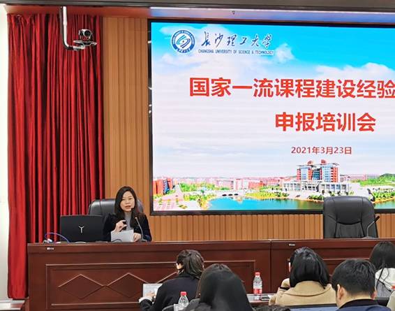 为做好 2021年国家一流本科课程申报工作,3月23日下午,在一办公楼九会议室,教务处组织举办了一场国家一流课程建设经验交流暨申报培训会。会议邀请了我校2019年已获得国家级一流课程的刘小燕教授和邓泽林教授上台做经验介绍,副校长刘朝晖出席了会议,全校近130名有意愿申报2021年国家级、省级一流课程和校级金课建设团队的老师参加了本次会议,会议由教务处副处长蒋菲主持。