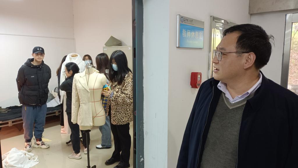 刘朝晖在艺术楼服装工艺室与正在做毕业设计的师生亲切交谈,了解毕业设计指导安排及进程情况,肯定了指导老师在毕业设计教学环节中所做的工作,鼓励毕业生努力完成好本科阶段最后的“考核”。