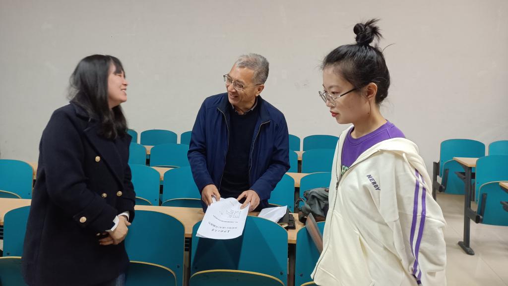 同时,教务处一行在文科楼对相关学院毕业设计(论文)指导工作依次检查。贺跃光在现场查阅了文新学院学生毕业论文成果材料,并与指导老师进行了交流。他强调,抓好过程指导,是提升毕业设计(论文)质量的关键。