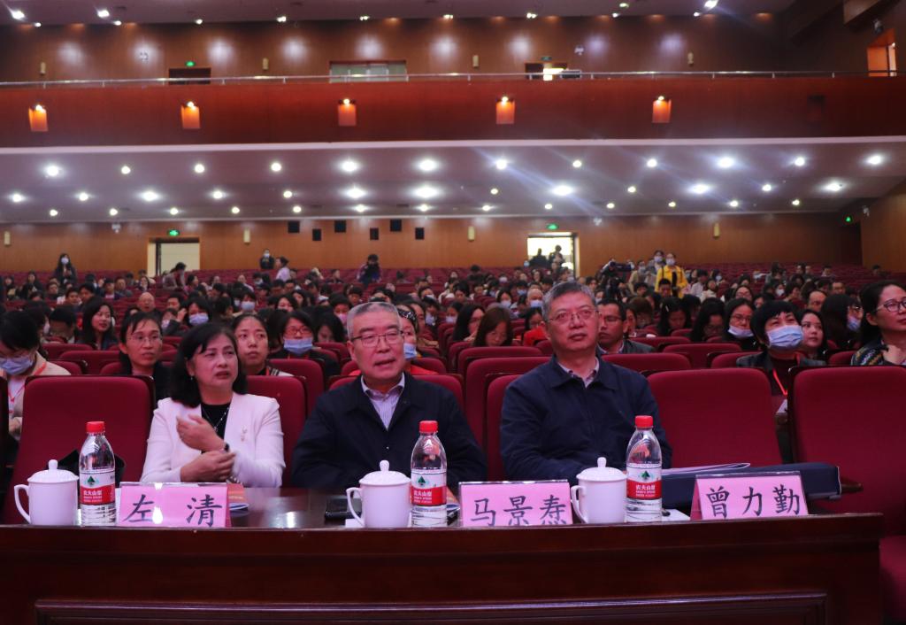 湖南省教育厅党组成员、工委委员左清、高等教育出版社副社长马景焘、湖南省教育厅高教处处长曾力勤出席会议现场