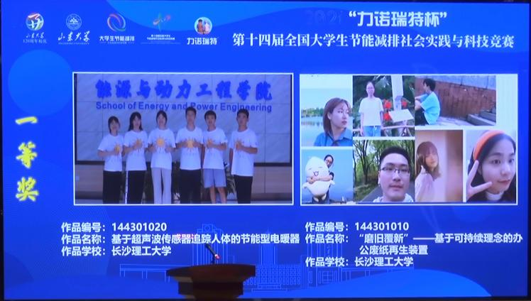 2021年8月27日至28日,“力诺瑞特杯”第十四届全国大学生节能减排社会实践与科技竞赛决赛在山东大学举行。经过网评、会评、路演和决赛答辩等阶段的层层选拔,我校两件参赛作品《“磨旧覆新”——基于可持续理念的办公废纸再生装置》和《基于超声波传感器追踪人体的节能型电暖器》,从参赛的514所高校的5201件有效作品中脱颖而出,获全国一等奖;我校还有7项作品获得三等奖,并获颁赛事优秀组织奖。此次获奖等级与数目均创历史新高。