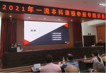 会议由教务处副处长蒋菲主持。会上,蒋菲对各学院参与申报一流课程的积极性给与了肯定。她相信通过这次的专题讲座,我校的一流课程申报水平将继续提升,为国家级,省级一流课程申报奠定扎实的基础。