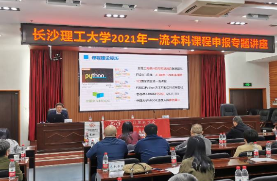 为做好我校国家级、省级一流本科课程申报建设工作,10月18日上午于一办公楼九会议室,教务处联合CMOOC联盟湖南工委组织举办了2021年一流本科课程申报专题讲座。会议邀请了北京理工大学嵩天教授作专题讲座。120余名有意向申报一流课程的任课老师参加了会议,教务处副处长刘洪深出席并主持。