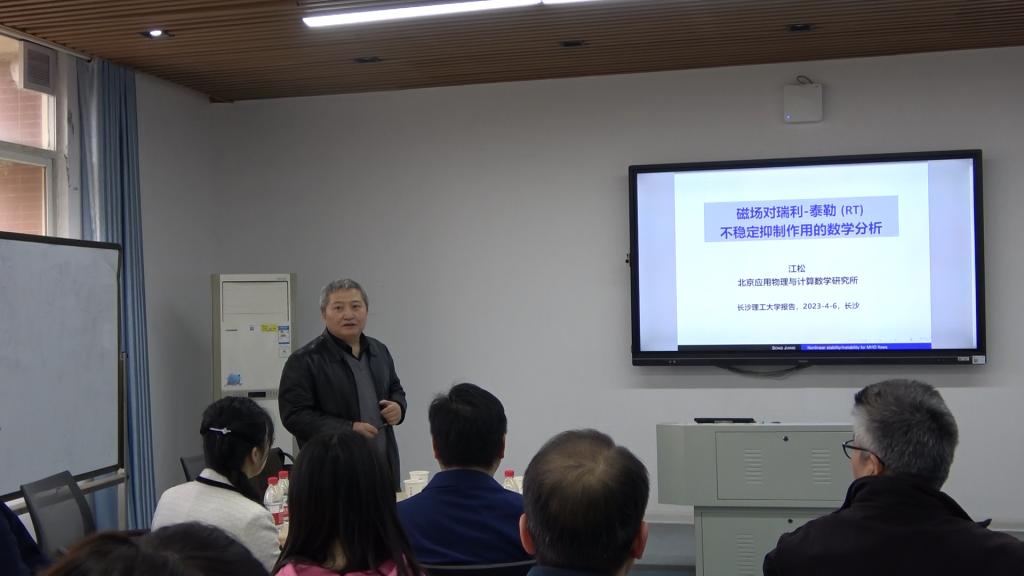 4月6日上午,数统学院开展“数学与统计类专业前沿系列名师专题课程”第二讲,特邀嘉宾是中国科学院江松院士,主题为“磁场对瑞利-泰勒不稳定性抑制作用的数学分析”。讲座由太阳成集团tyc122cc入口副校长黄创霞教授主持。