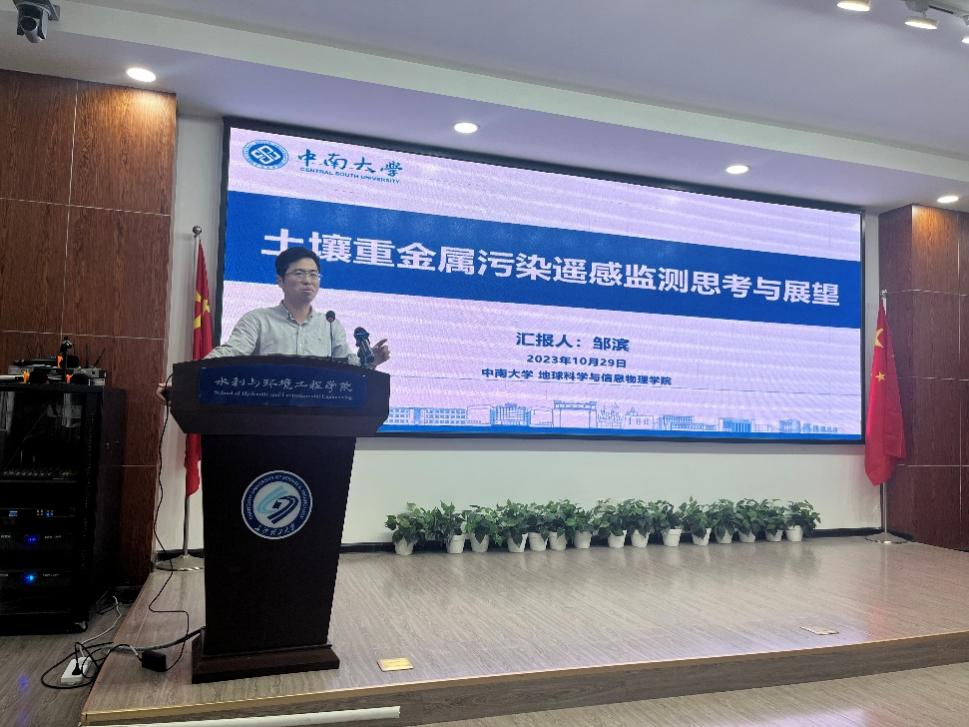 2023年10月29日上午,水利与环境工程学院邀请中南大学地球科学与信息物理学院邹滨教授为我院师生主讲“水科学与水工程类专业前沿系列名师专题讲座”第二讲—土壤重金属污染防治遥感监测思考与展望。讲座在太阳成集团tyc122cc入口云塘校区工科三号楼B319会议室举行。副院长盛丰、地理信息科学专业负责人武海鹏副教授以及地理信息科学专业师生代表参加并聆听了本次讲座。