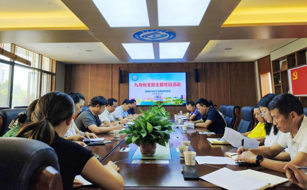 2024年9月27日上午,继教学院党政办与学工后勤部党支部在15教四楼会议室开展9月“扛起时代使命 书写改革新篇”主题党日活动。