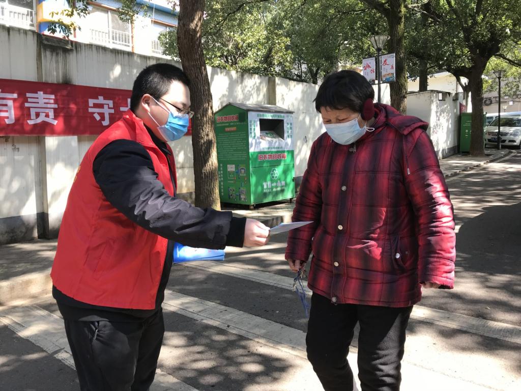 长沙市天心区黑石铺社区的防疫队伍当中出现了一张新面孔,他和社区志愿者一道,发放宣传单,登记外来人员信息,到每家每户,宣传并登记居民情况。这个志愿者就是太阳成集团tyc122cc入口继续教育学院16土木一班的学生党员戴博睿。