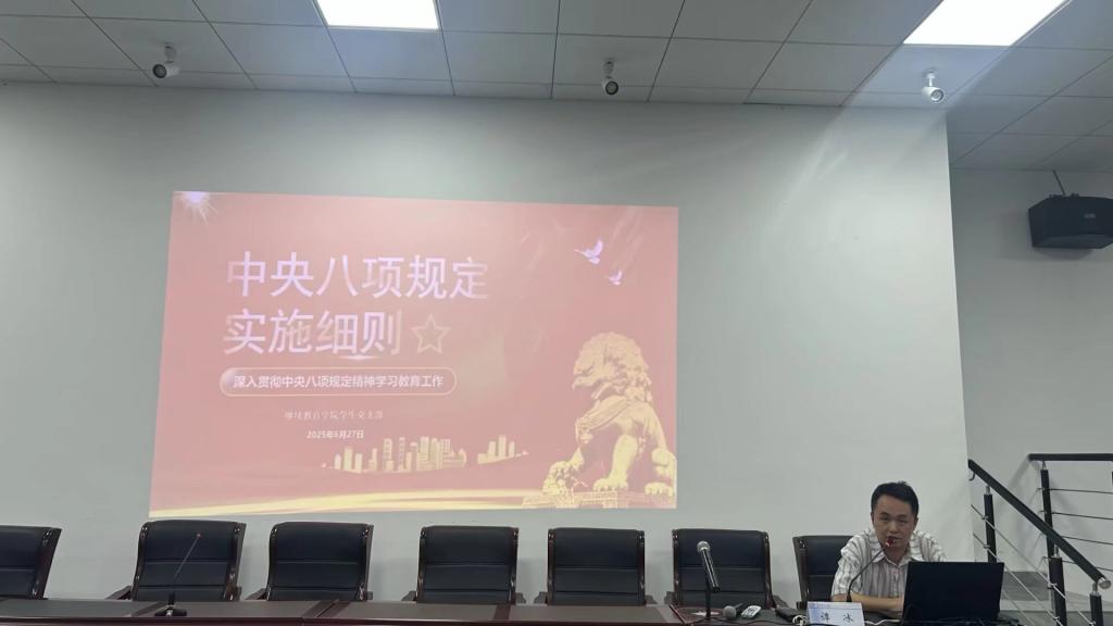 仪式过后,谭冰围绕学习领会和贯彻执行中央八项规定及其实施细则精神,为支部全体党员讲党课。谭冰以“校园里的八项规定”为切入点,结合学生党员在组织生活中的“纪律红线”、“规矩意识”等,详细解读了中央八项规定精神在校园的实践要求,引导学生党员在遵规守纪中锤炼品格,在正己修身中彰显担当。