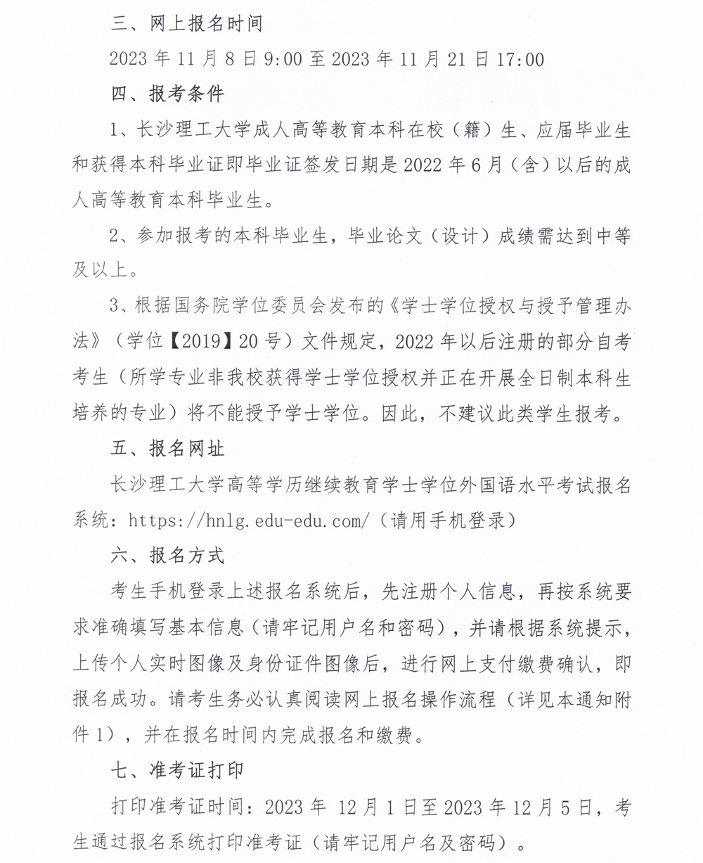 2023 年下半年高等学历继续教育学士学位外国语水平考试(线上) 报名通知
