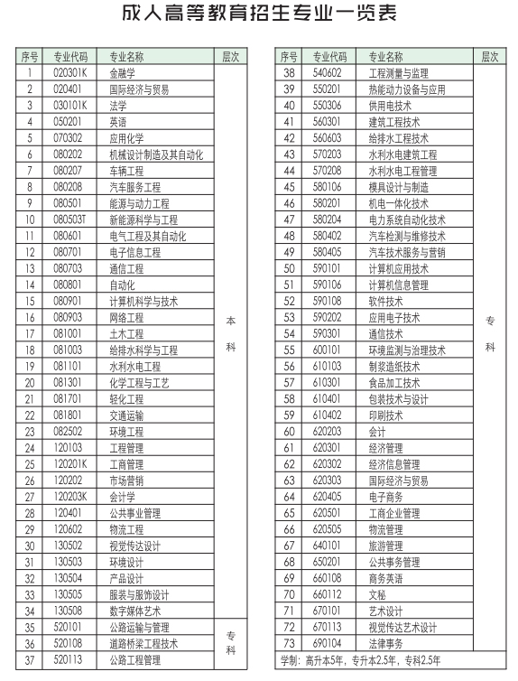 2015年太阳成集团tyc122cc入口成人高等教育招生专业一览表