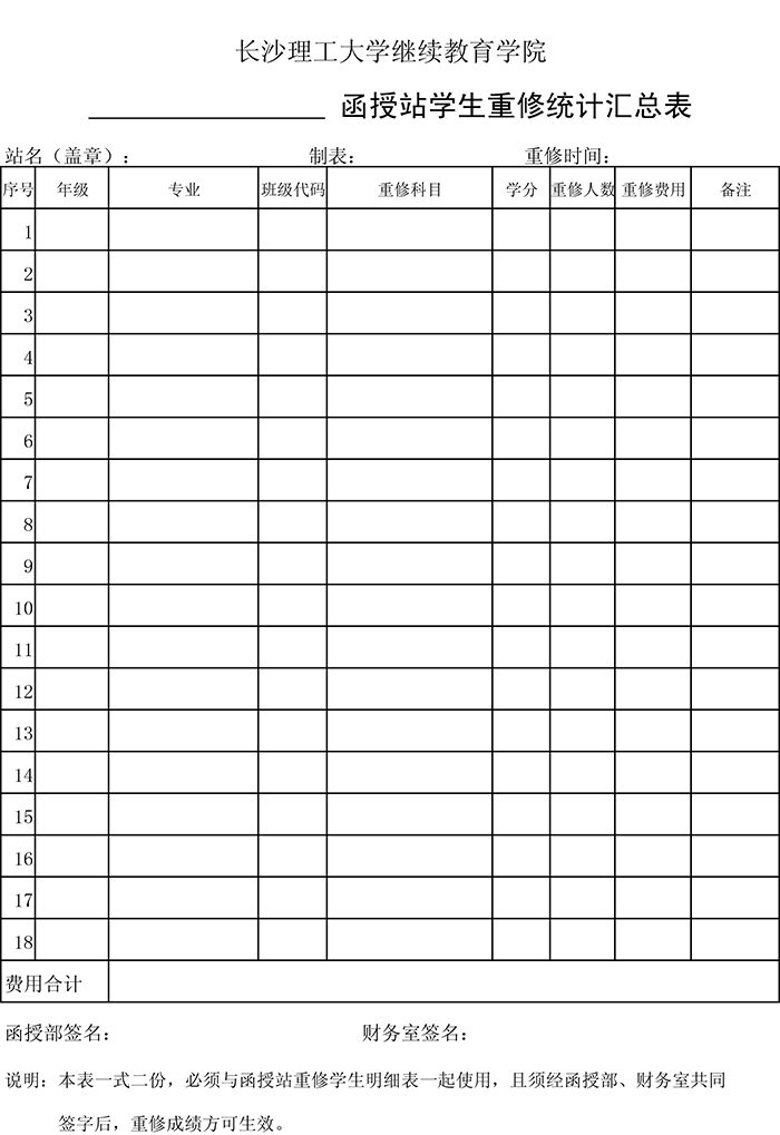 函授站学生重修统计汇总表模板