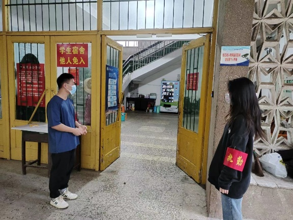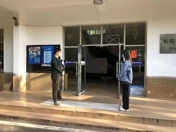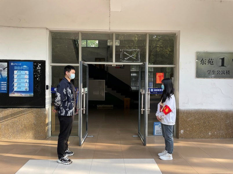4月4日早上7:30,学院的6名学生党员分别带领6名积极分子在各宿舍楼下进行执勤活动。执勤活动的目的是提醒同学们戴好口罩,注意自我防护,同时也配合教学楼抓好疫情防控工作。