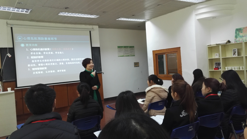 3月7日下午,学工部在14教学楼600教室举办“高校心理危机干预”专题培训讲座,主讲人为校心理健康教育中心副主任龚勋。讲座由我院学工部主任任国芳主持。学工部全体班主任25人参加了学习。