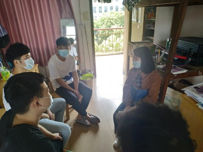 疫情期间,学院的班主任老师均住金盆岭校区,与学生同吃住,深入宿舍做好思想政治教育工作,为学生提供全面细致的成长辅导,为学生排忧解难;考虑一直封闭在校园内的学生身心健康,各班主任老师在周末组织学生在球场上开展球类运动,在操场上和学生一起玩户外游戏活动,丰富校园生活。