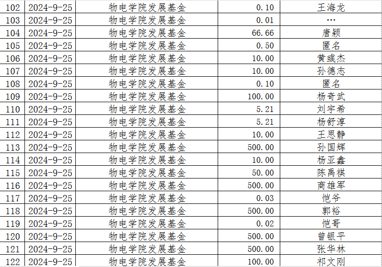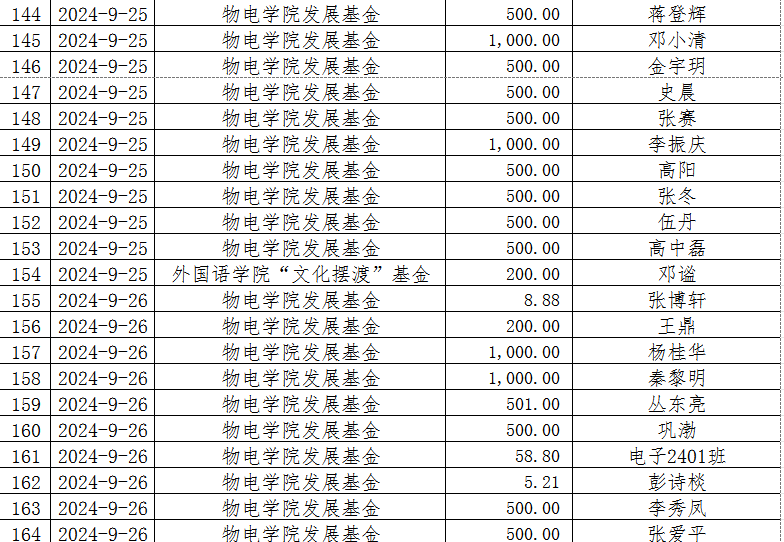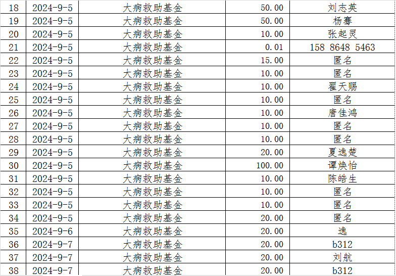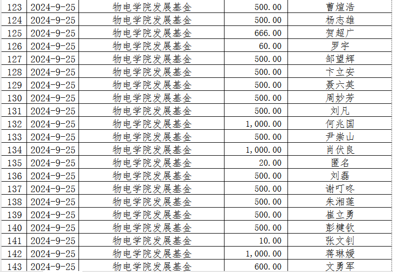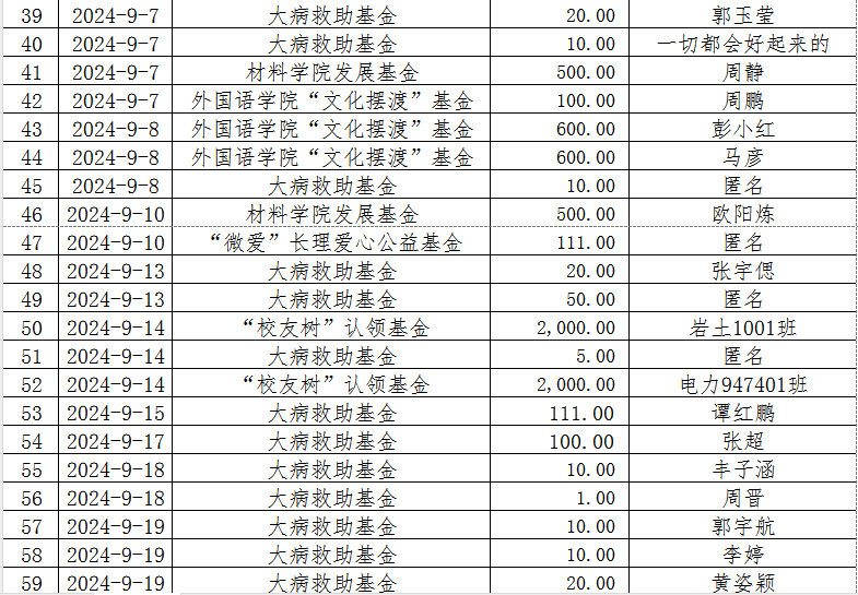 湖南省太阳成集团tyc122cc入口教育基金会2024年9月捐赠收入表