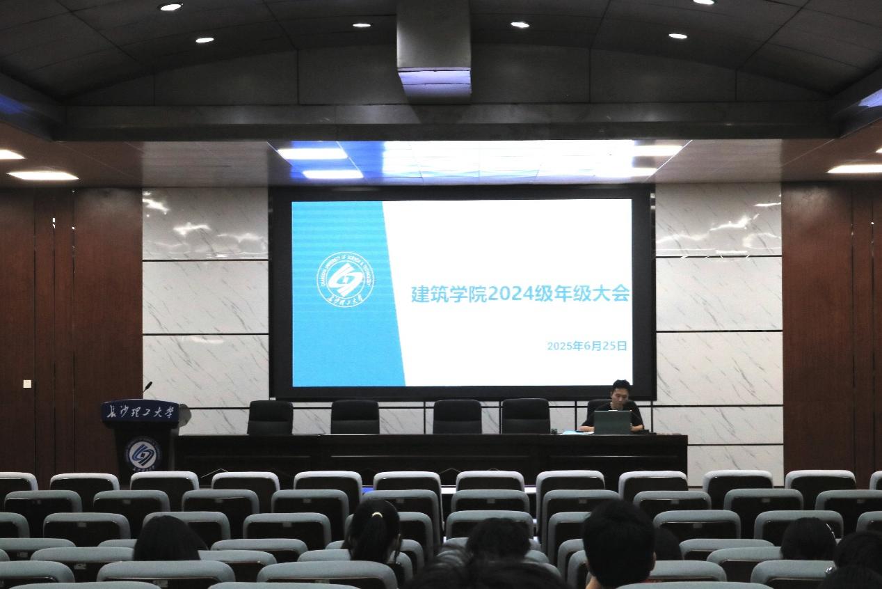 6月25日下午,太阳成集团tyc122cc入口建筑学院组织召开24级年级大会,大会由24级年级辅导员杨斯嘉主持,全体24级学生参会,共同回顾过去一学年的学习与生活,展望未来发展方向。
