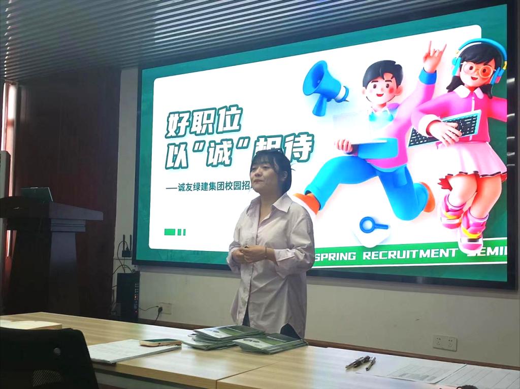 本次宣讲会共分为三个部分。首先主讲人对公司进行了详细的介绍,指出诚友绿建是中国新型建筑工业化领跑者,并就当前建筑行业的局势,指出了公司的发展方向,建设思路以及目前公司的现状。随后,主讲人介绍了诚友以往建设的产品及其发展方向的可观性,并对其具有匠心的产品、专业设计管理的团队、公司的待遇和丰富的团建活动进行介绍,进一步调动了同学们的热情。最后,主讲人用一个视频展现诚友的绿建发展对美丽乡村建设、国家绿建发展等起到重要作用,进一步吸引同学们的热情。宣讲会结束后,同学们踊跃提问,主讲人耐心回答,现场氛围热烈,随后多名同学投递简历参加面试。