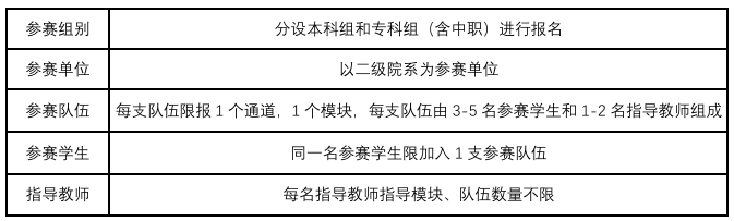 本届大赛常规赛道竞赛为团体赛,具体要求如下: