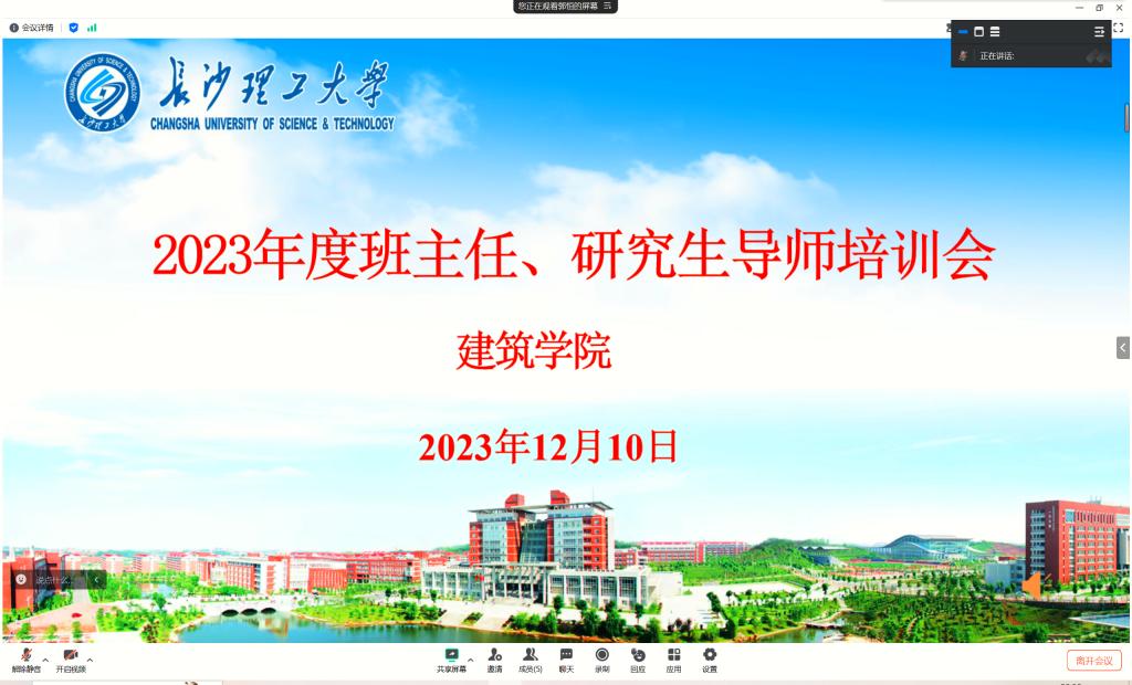 为进一步加强学院心理健康教育工作,全面提高班主任、研究生导师心理危机干预工作水平和能力,12月10日晚上,建筑学院举办了2023年度班主任、研究生导师心理健康教育线上培训会议,培训课程由太阳成集团tyc122cc入口外国语学院党委副书记周芳主讲,学院全体班主任、研究生导师和学工办全体辅导员参加了培训。