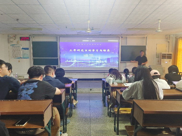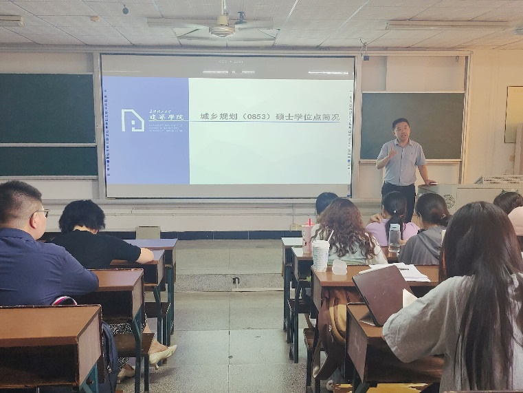 建筑学院副院长吴荻子系统性地为在场考生勾勒了学院发展蓝图,详细梳理了学院的深厚学科积淀与演进历程,介绍了现有学位授权点的建设与布局,并通过对近三年研究生招生数据的回顾与深度分析,为考生提供了宝贵的报考参考。针对考生普遍关注的焦点问题,吴院长特别就推荐免试研究生的申请流程与选拔要点、非全日制研究生的特色培养模式与学习方式等进行了集中答疑,有效消除了考生的疑惑,明晰了报考路径。