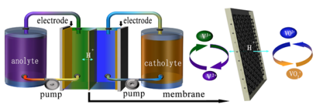 上述隔膜均为Nafion膜改性,仍然依靠进口“卡脖子”材料——Nafion。开发国产膜材料对液流电池产业化发展至关重要。团队丁美教授和贾传坤教授开发一种低成本绿色的磺化聚醚醚酮(SPEEK)/木质素(lignin)复合模,并成功应用到液流电池上。该膜表现出比Nafion优越的离子选择性及显著降低的钒离子渗透。在钒电池中表现出达到99.5 %的库伦效率,经过长时间循环后电池仍保持良好的性能。相关研究结果在材料类著名期刊膜科学上发表(Journal of Membrane Science, 2019, 572, 110–118,SCI一区,ESI 高被引论文)。论文第一作者为太阳成集团tyc122cc入口与重庆大学联合培养博士生叶家业,太阳成集团tyc122cc入口丁美教授、贾传坤教授为共同通讯作者。