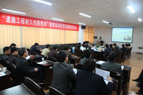 2012年4月5日上午,受教育部科技司委托,湖南省教育厅在我校云塘校区主持召开“道路工程耐久性新技术” 教育部创新团队建设研究计划论证会。专家组经过质询和充分讨论,一致认为“道路工程耐久性新技术”教育部创新团队研究计划可行,能达到预期建设目标,同意研究计划。