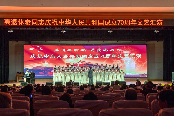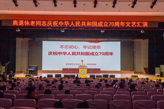 9月24日,我校离退休教职工服务中心组织离退休老同志在金盆岭5教大礼堂隆重举行“‘莫道桑榆晚,为霞尚满天’庆祝中华人民共和国成立70周年文艺汇演”。校党委书记付宏渊、党委副书记邹宏如、学校离退休工作领导小组成员,及1000余名离退休老同志共同观看了演出。