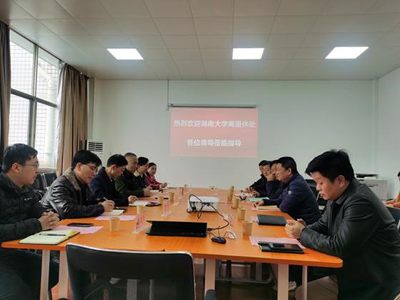 离退休中心主任徐亮对湖南大学离退休处一行来我校交流离退休工作表示热烈欢迎,并从以高质量党建引领新时代离退休工作高质量发展等方面介绍了我校离退休干部党建工作情况,从服务管理体系、 经费保障、待遇落实等方面介绍了我校离退休服务工作情况。
