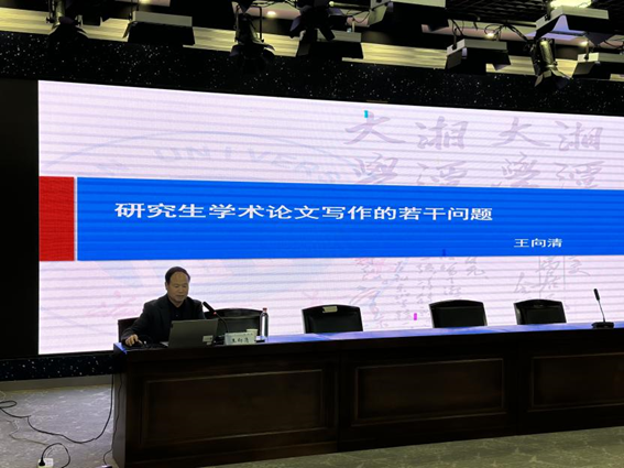 2024年10月29日下午14:30,湘潭大学马克思主义学院二级教授王向清应邀莅临我院,在我校云塘校区文科楼B300报告厅就 “研究生学术论文写作的若干问题”开展了一场精彩的学术报告。本场报告由马克思主义学院副院长郭华主持,学院教师代表及研一、研二研究生参加。