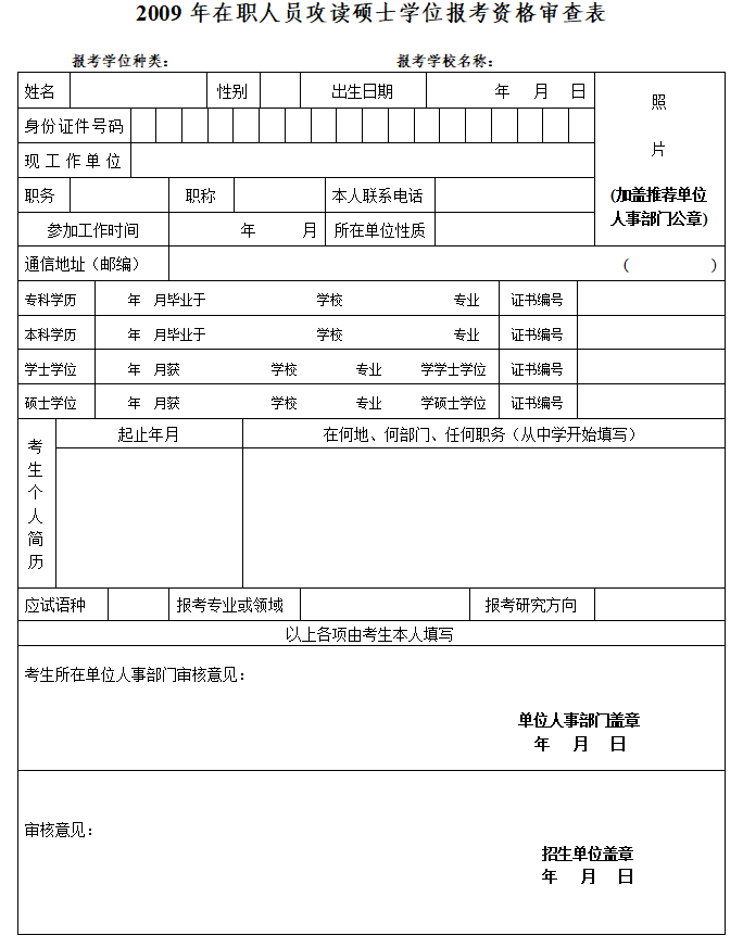 太阳成集团tyc122cc入口在职研究生资格审查表(样表)