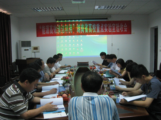 我校“能源高效清洁利用”实验室成立于1997年,2008年申请并获批作为湖南省普通高等学校重点实验室进行建设。2011年7月28日,湖南省教育厅组织了以大唐湖南分公司黎利佳教授级高工为组长的专家组对该重点实验室进行了考察验收,验收会由湖南省教育厅科技处处长左清主持,副校长邹宏如教授出席会议并致欢迎词,学校科技处处长刘永乐、副处长查旭东、能动学院党委书记符慧林、副院长刘亮、曹小玲及部分师生参加了验收会。