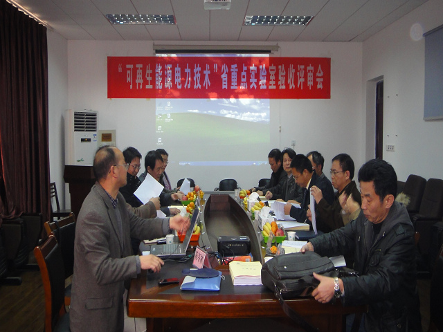 2011年12月16日,由湖南省科技厅组织,以中南大学贺跃辉教授为组长的验收专家组对我校“可再生能源电力技术”省重点实验室进行了验收评审。验收会由省科技厅发展计划处副处长王先民主持,学校正校级督导柳见成教授致欢迎词,学校科技处、能动学院、电气学院、化环学院相关负责人和实验室主要学术骨干参加了会议。