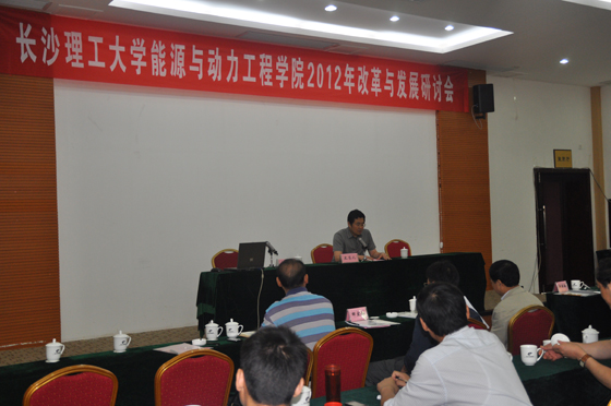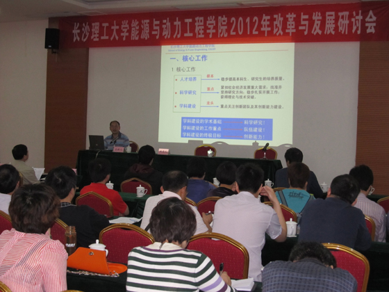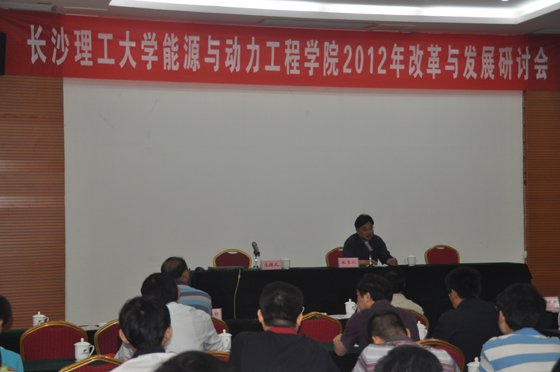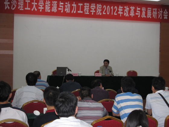 会上,邹宏如副校长首先做了题为“认清形势、抢抓机遇,明确思路、深化改革”的专题报告。报告中,他从形势与机遇、现状与挑战、改革与建议三个方面全面分析了“十二五”期间国家和湖南能源发展的形势,特别是湖南“十二五”节能减排综合规划的实施以及长株潭两型社会的建设给能动学院发展带来的机遇;剖析了面临新形势学院发展的地域、学科和专业优势以及学院的现状与不足;提出了应对机遇与挑战,学院下一步改革应该思考的几点建议。副校长洪源渤在讲话中结合能源发展的形势和学校发展的要求,就能动学院人才培养的模式和科研团队建设谈了个人的看法与建议。