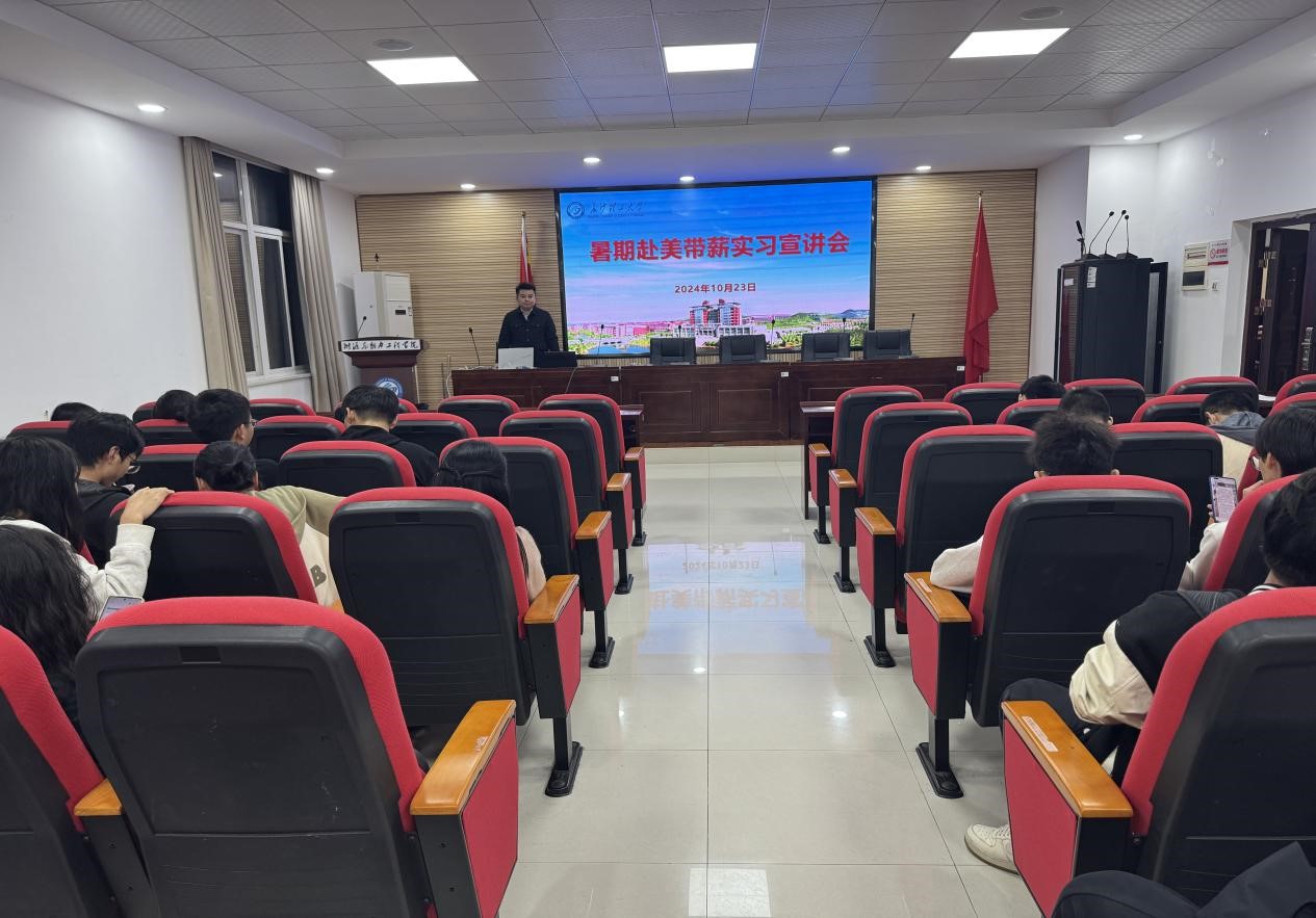 10月23日晚19:00,能源与动力工程学院在新能源大楼二栋502会议室开展暑期赴美带薪实习宣讲会。海外实习赴港项目负责人饶力受邀担任主讲嘉宾,电气与信息工程学院学生刘伊卓作分享交流,能动学院约60余名学生参加会议。