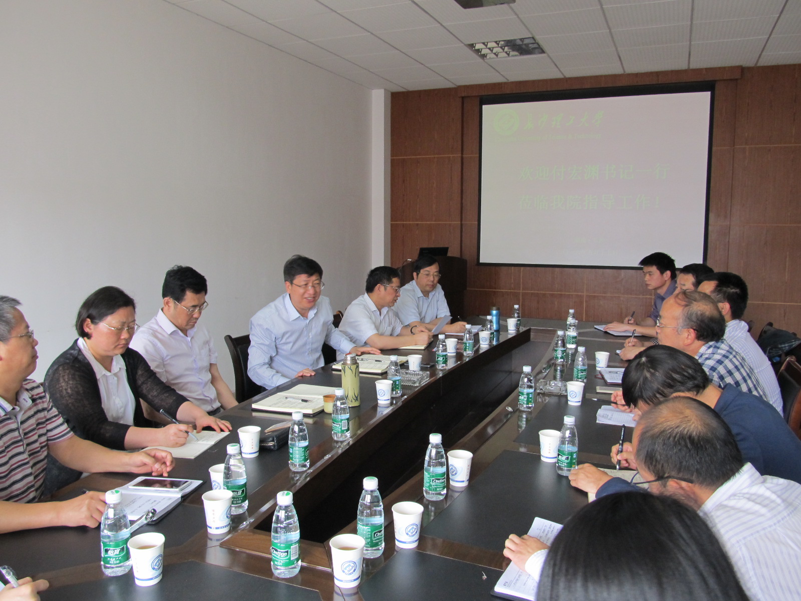 5月17日上午,校党委书记付宏渊、常务副校长洪源渤、纪委书记胡永乐、党政办主任敖洁、规划法规处处长卢毅、高教研究所所长刘解龙一行莅临能动学院调研、指导工作,学院领导班子成员和各系(中心、科室)、学科团队负责人出席。