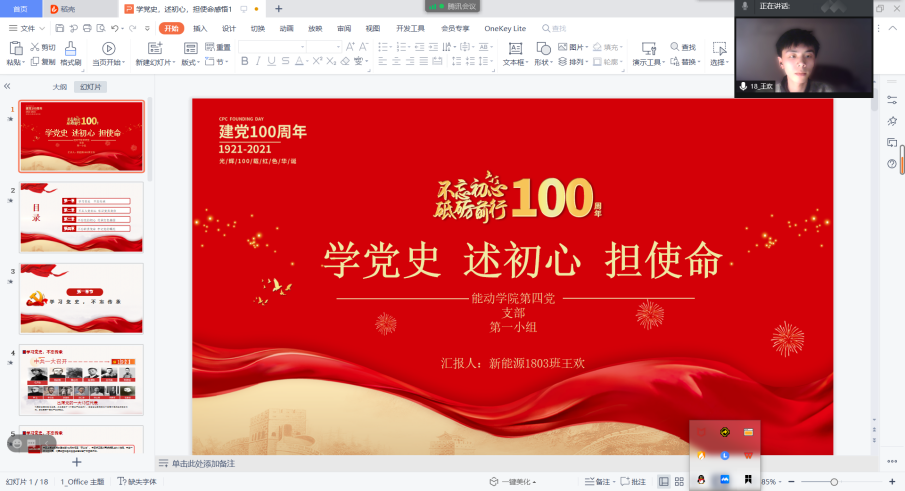 2月23日晚19:00,能动学院本科生第四党支部采取线上的形式,召开《学党史.述初心.担使命》报告交流会。会议由肖晗主持,支部成员按时与会,一人请假。