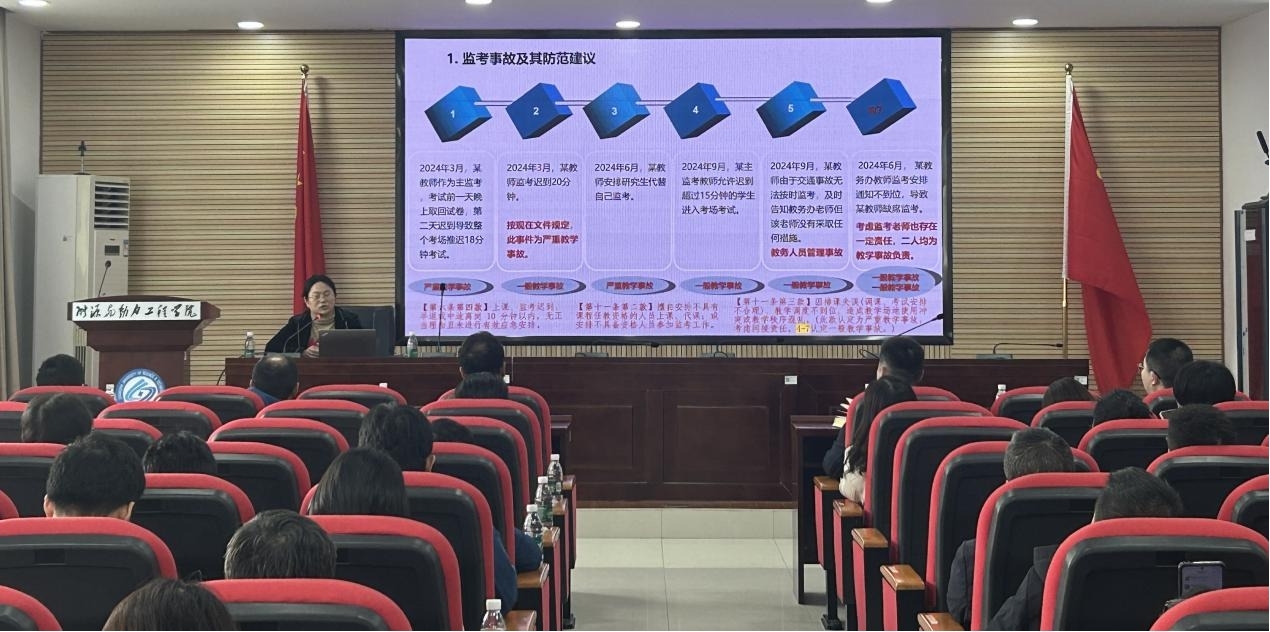 李院长强调强调课堂是人才培养的主要渠道和主阵地,是高校落实立德树人根本任务的关键环节;教师是课堂教学的第一责任人,担负着承载着传播知识、传播思想、传播真理,塑造灵魂、塑造生命、塑造新人的时代重任,所以应该严格遵守学校课堂教学及监考等教学规范。