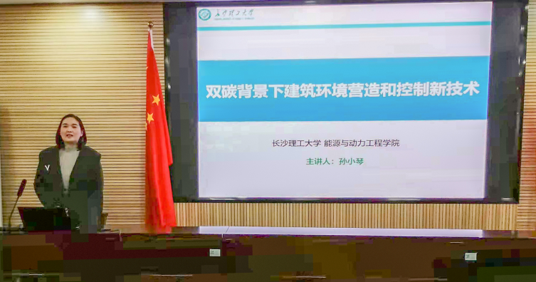 1214日下午2半,我院孙小琴教授在新能源2号楼502为全校本科生进行了主题为《双碳背景下建筑环境营造和控制新技术》的通识教育讲座。能源与动力工程学院田红副院长主持了本次通识教育讲座。田副院长简要介绍了孙教授的学识背景以及目前所获成就,鼓励在座同学认真听讲,学习孙教授的刻苦努力、严于律己的科研教学态度与精神。