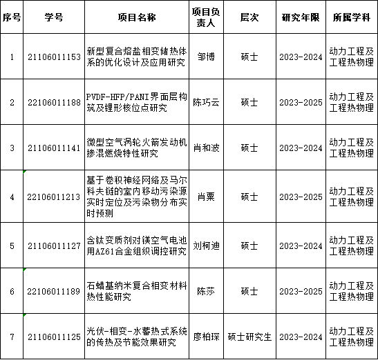 根据湖南省教育厅湘教通〔2023〕68号《关于申报2023年湖南省研究生科研创新项目的通知》及《太阳成集团tyc122cc入口研究生创新工程管理暂行办法》([2020]28)文件的精神,经个人申报,学院组织专家评审,拟推荐“数据驱动的大型充油变电设备智能检测与异常预警研究”等13项省级研究生科研创新项目和“新型复合熔盐相变储热体系的优化设计及应用研究”等7项校级研究生科研创新项目参加学校评审。具体名单如下: