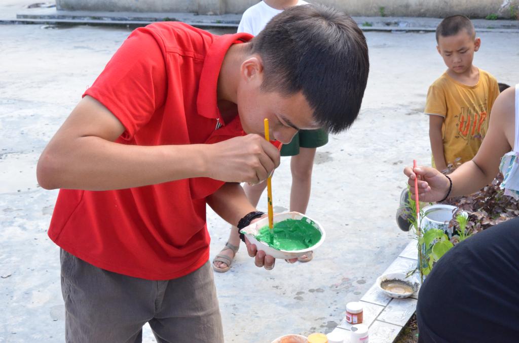 本次活动从7月下旬开始,历时两周,将操场院子的墙面粉刷一新。墙画由能动学院团委书记罗亦欧起笔。在罗老师的带领下,全体“红烛”老师及各个班级精挑细选出来的“小画家”们用提前准备好的颜料和工具一起参与墙画装扮。