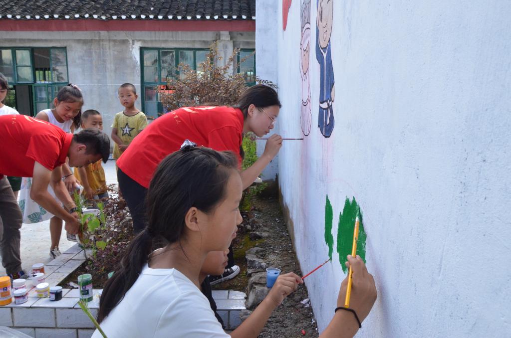 “手绘墙是流动而有质感的风景,是生长在墙上的花朵。” 8月2日,能源与动力工程学院红烛关爱留守儿童志愿服务团在澎湖村小学顺利完成了集体墙画活动。
